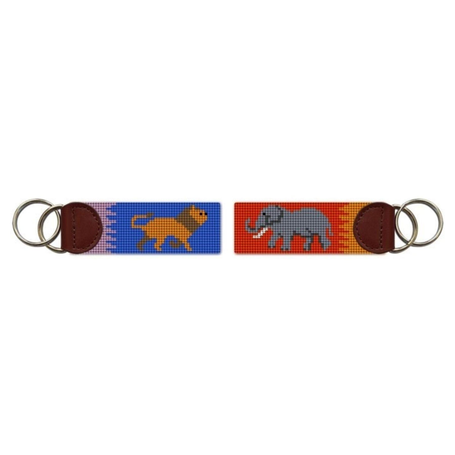 Lion and Elephant Safari Needlepoint Key Fob